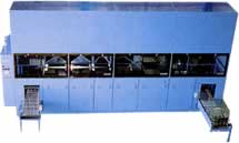 リードフレームの短尺材の全自動式 ラインスピード10m/分 プレスラインから直結 真空蒸留再生器付 |